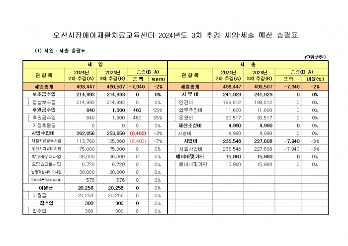 2. ¿À»ê½ÃÀå¾Ö¾ÆÀçȰġ·á±³À°¼¾ÅÍÀÇ 2024³âµµ Á¦3Â÷ Ãß°¡°æÁ¤ ¼¼ÀÔ.¼¼Ãâ ¿¹»ê¼¸¦ °ø°íÇÕ´Ï´Ù.