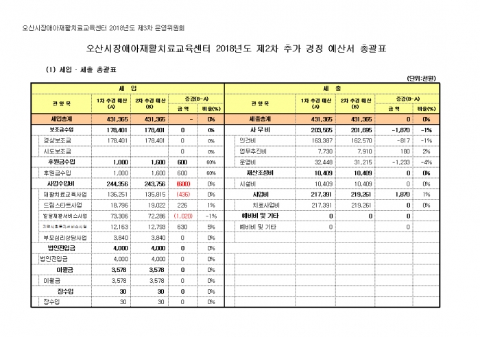 2. ¿À»ê½ÃÀå¾Ö¾ÆÀçȰġ·á±³À°¼¾ÅÍÀÇ 2018³âµµ Á¦2Â÷ Ãß°¡°æÁ¤ ¼¼ÀÔ.¼¼Ãâ ¿¹»ê¼¸¦ °ø°íÇÕ´Ï´Ù.