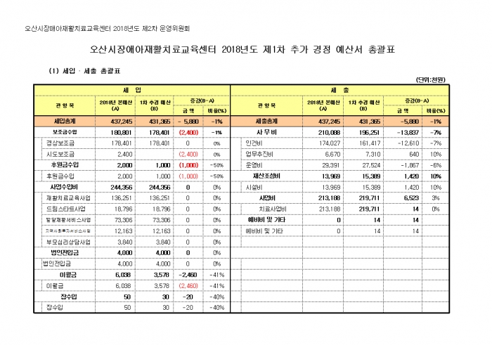 2. ¿À»ê½ÃÀå¾Ö¾ÆÀçȰġ·á±³À°¼¾ÅÍÀÇ 2018³âµµ Á¦1Â÷ Ãß°¡°æÁ¤ ¼¼ÀÔ.¼¼Ãâ ¿¹»ê¼¸¦ °ø°íÇÕ´Ï´Ù.